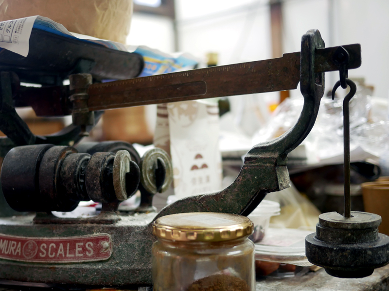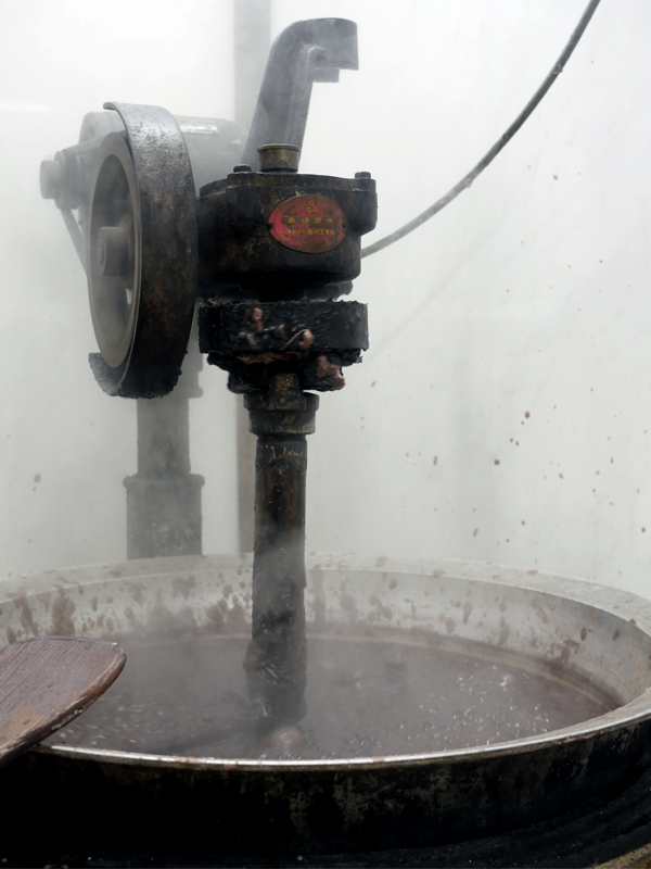 初代武義氏が購入し半世紀以上動き続ける、金蝶園分店の餡をつくる機械と窯。シンプルな構造の先につく、ずっしりと重みのあるヘラ、窯に伝わる強い火力でも焦げずにじっくりと餡を炊きます。