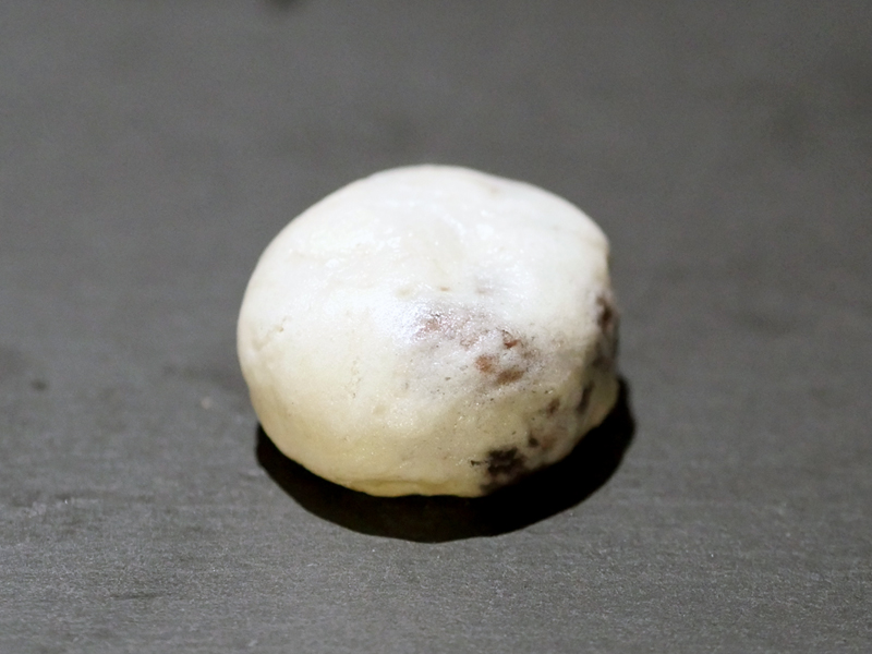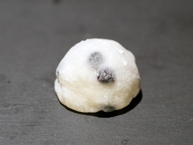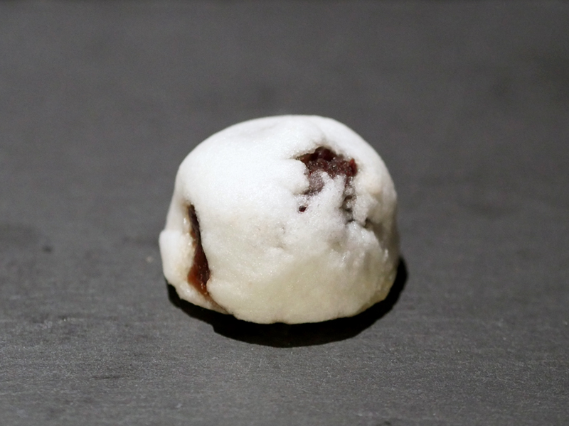 黒い宝石のように散りばめられた赤エンドウ豆と甘さ控えめな餡子を柔らかな生地で包んでいます。